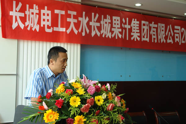 蘭州長城電工股份有限公司副總經(jīng)理毛建光作重要講話。他首先代表長城電工對本次會議的成功舉辦表示熱烈祝賀!指出2009/2010榨季長城果汁經(jīng)受住了果汁行業(yè)的嚴峻挑戰(zhàn)。面對2010/2011榨季,我們要保持積極樂觀的心態(tài),堅定信心,逆勢而上。